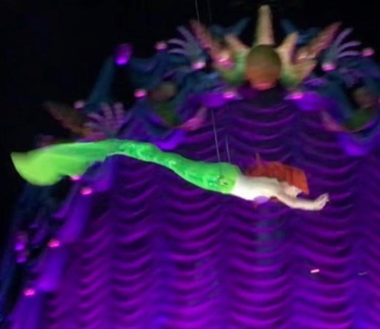 As tears were streaming down my face, the music started. In flys, this lovely, talented woman held only by cables and dancing through the air like an angel with the most grace I’ve ever seen and entertained the audience with her vibrancy acknowledging the crowd with waves and the best smile.  Capturing hearts and leaving lasting memories of the crowd that represented all different demographics.
